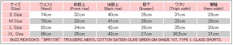 BUZZ RICKSON'S バズリクソンズ "BR51735" TROUSERS, MEN'S, COTTON SATEEN OLIVE GREEN QM SHADE 107, TYPE 1, CLASS SHORTS ミリタリー ベイカー ショーツ military [ショーツ]