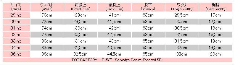 【FOB FACTORY,F153,14.75oz SELVEDGE DENIM TAPERED 5P】