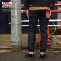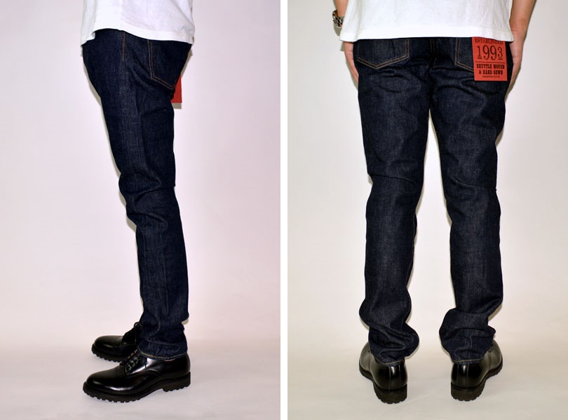 また、旧式の力織機で織るからこそ生まれる、『点が繋がり縦落ちになる』というヴィンテージジーンズ特有の縦落ち感やアタリやヒゲの出かたも文句の無い仕上がりで、ヴィンテージジーンズそのもののような魅力を楽しむことが出来ます。