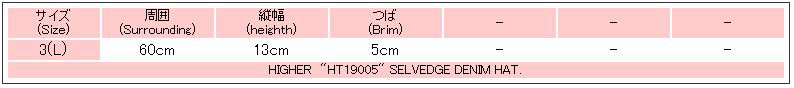 【HIGHER、HT19005、セルビッチ デニム ハット】