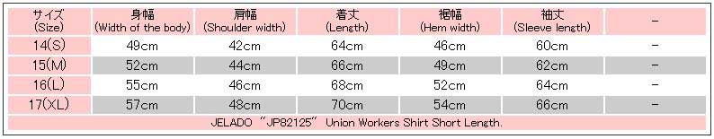 【JELADO、JP82125、Union Worker Shirt Short Length】
