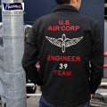 US.AIRCORPのエンジニアチームで作業着として使用されていたというストーリーのもと、 後にUS.ARMYAIRFORCEと統合されることで”USAAF”刺繍が左胸に後から入れられたデザイン。生地にはムラ糸バックサテンを用い、年月と共に経年変化を楽しめる一着です。