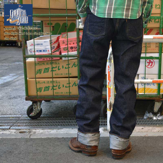 【graphzero、GZ-16LST-03、16oz 右綾 ルーズストレートジーンズ】