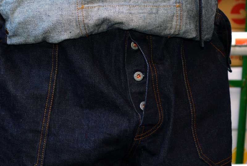 生地濃い色合いの12ozセルビッチデニムを使用していますです。