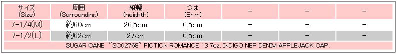 【SUGAR CANE、SC02768、FICTION ROMANCE 13.7oz. INDIGO NEP DENIM APPLEJACK CAP】