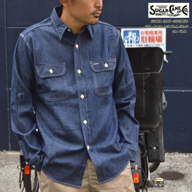 【SUGAR CANE、SC27852、ブルー デニム L/S ワークシャツ】