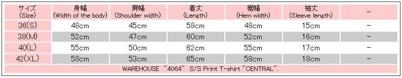 【WAREHOUSE、4064 CENTRAL、プリントS/STee】