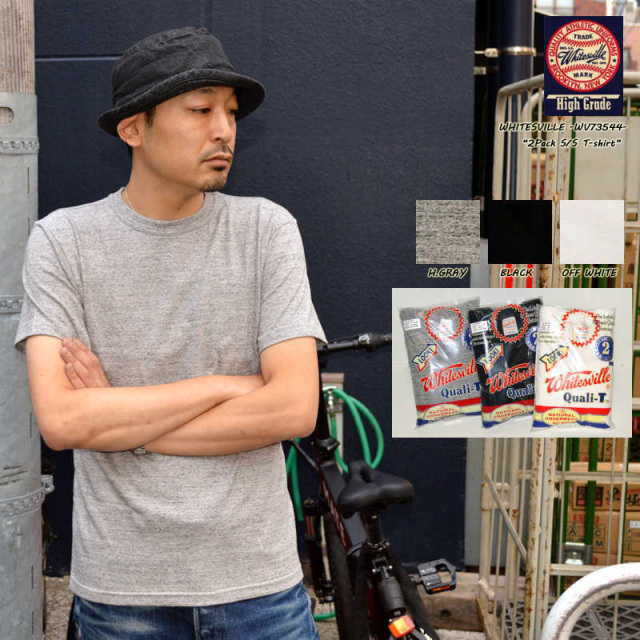 肩、裾、袖口は2本針の縫製。年間を通して着用可能なこの2パックTシャツは、ホワイツビルのロングセラー商品です。